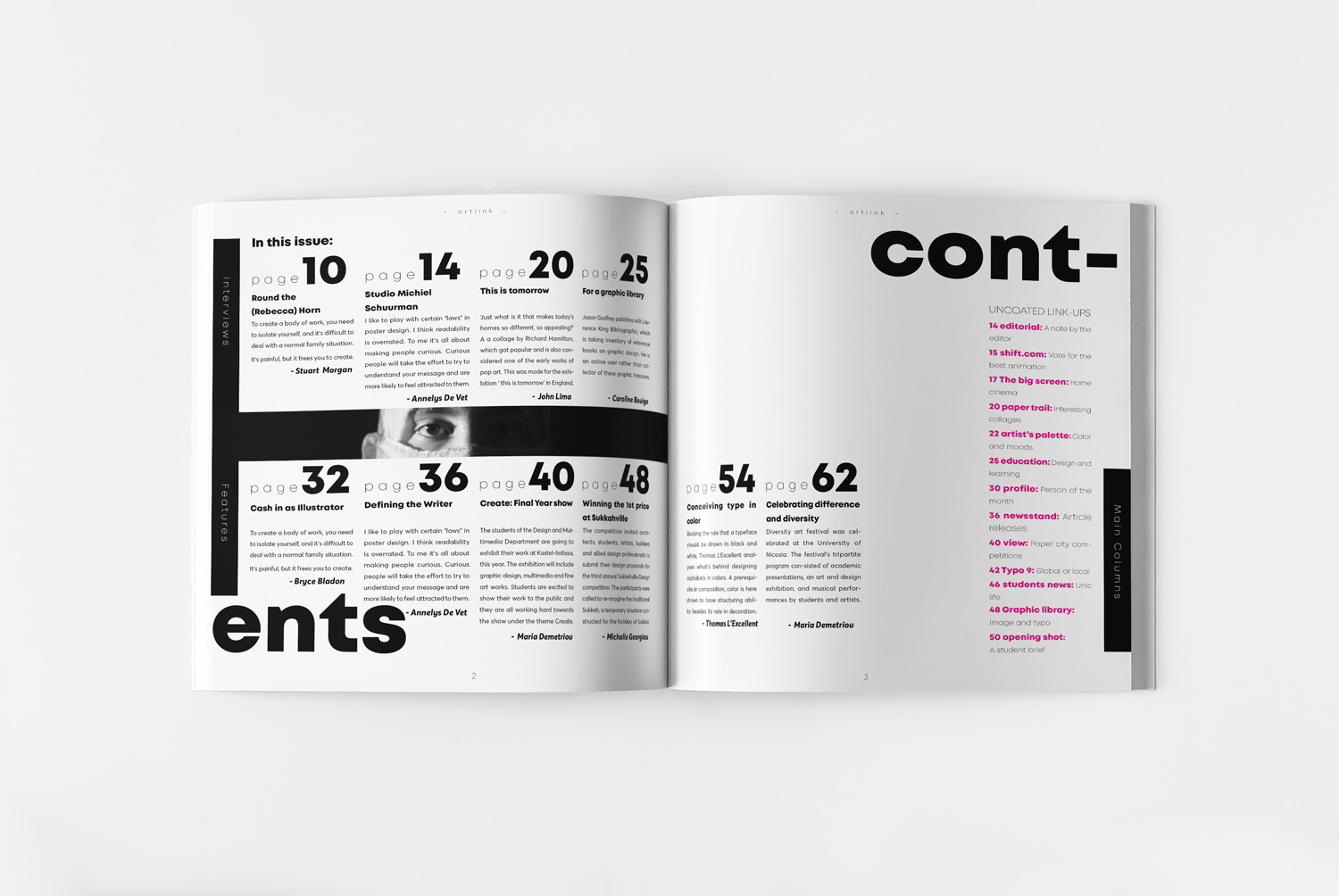 When the University of Nicosia approached me with the idea of an on-campus magazine for all the students in the Arts, Media and Tech department called Artlink I was hooked.