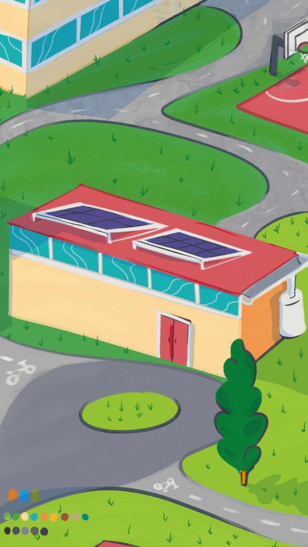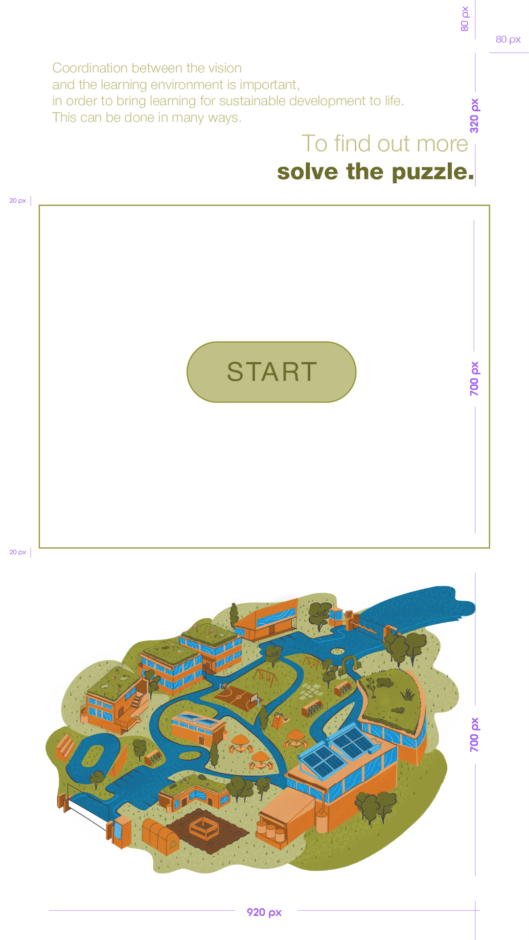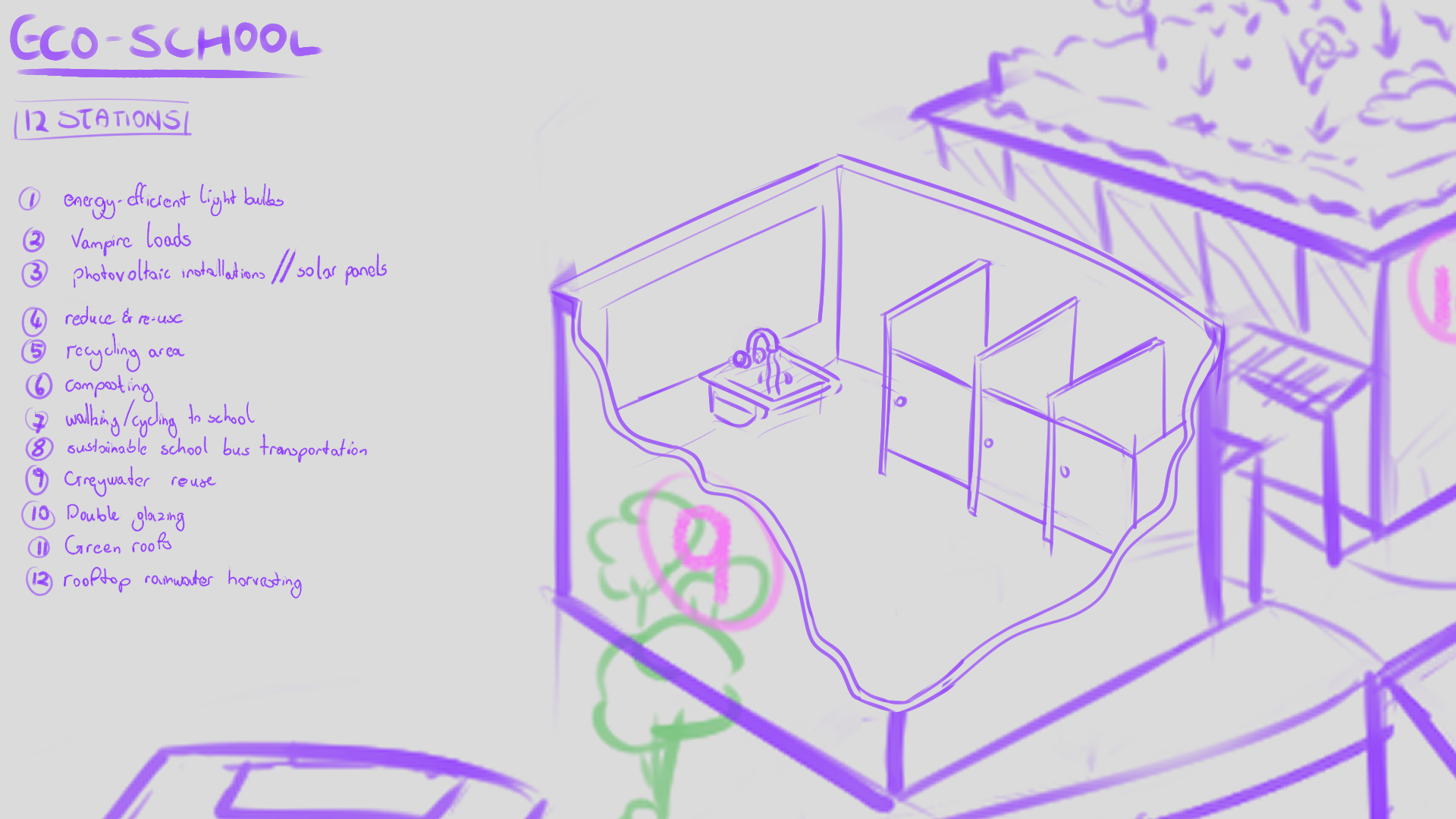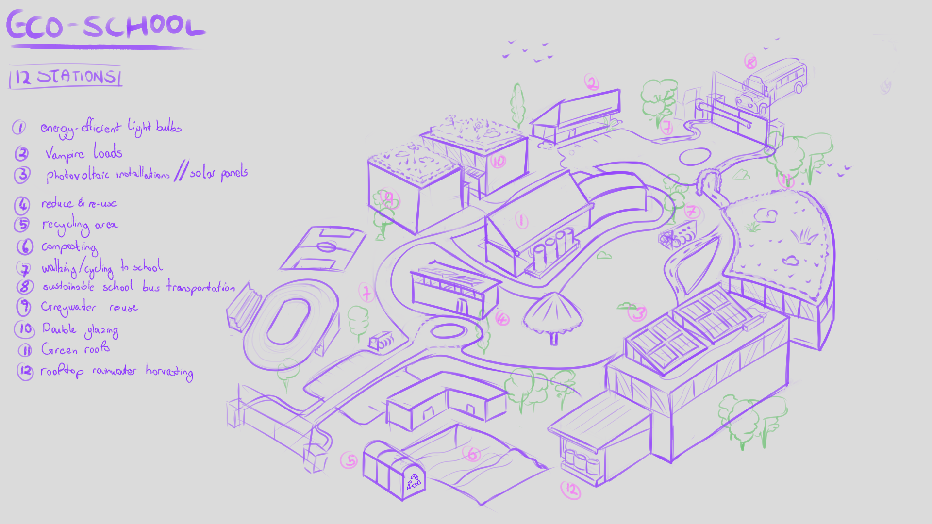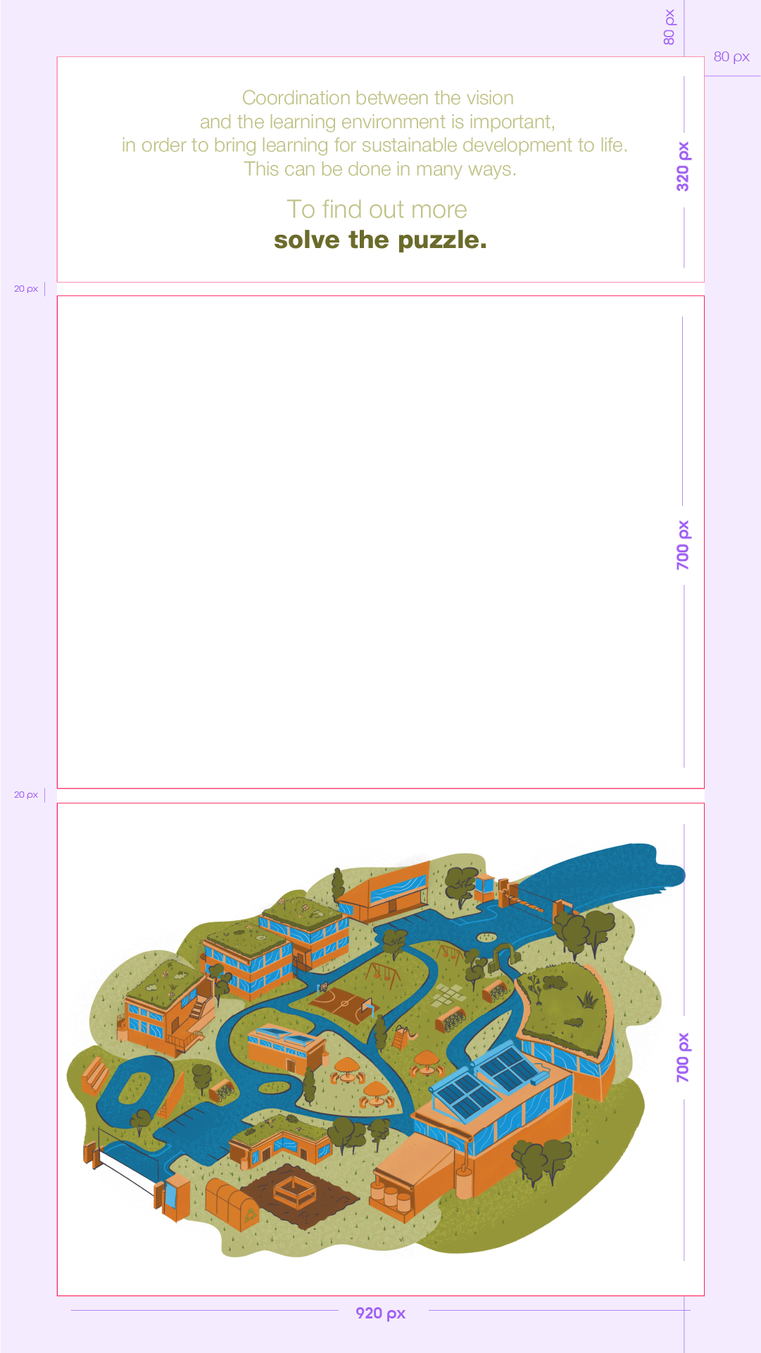 As part of their exhibition, a station with an interactive screen would be set up for attendees to have a go at solving a relatively simple puzzle to realign the original. On completion the puzzle would transition into an animated video with more information on building sustainable “Eco-school”