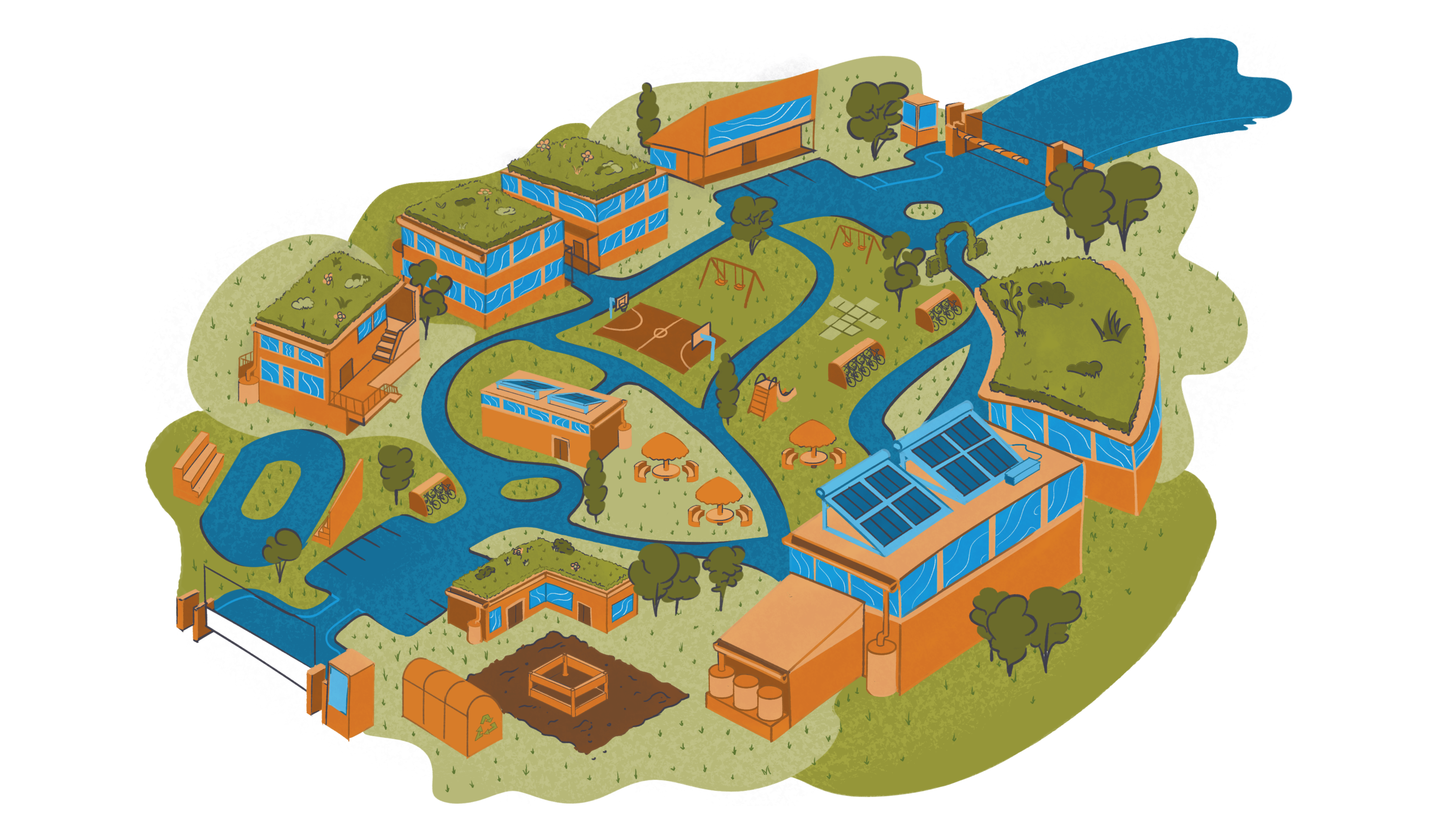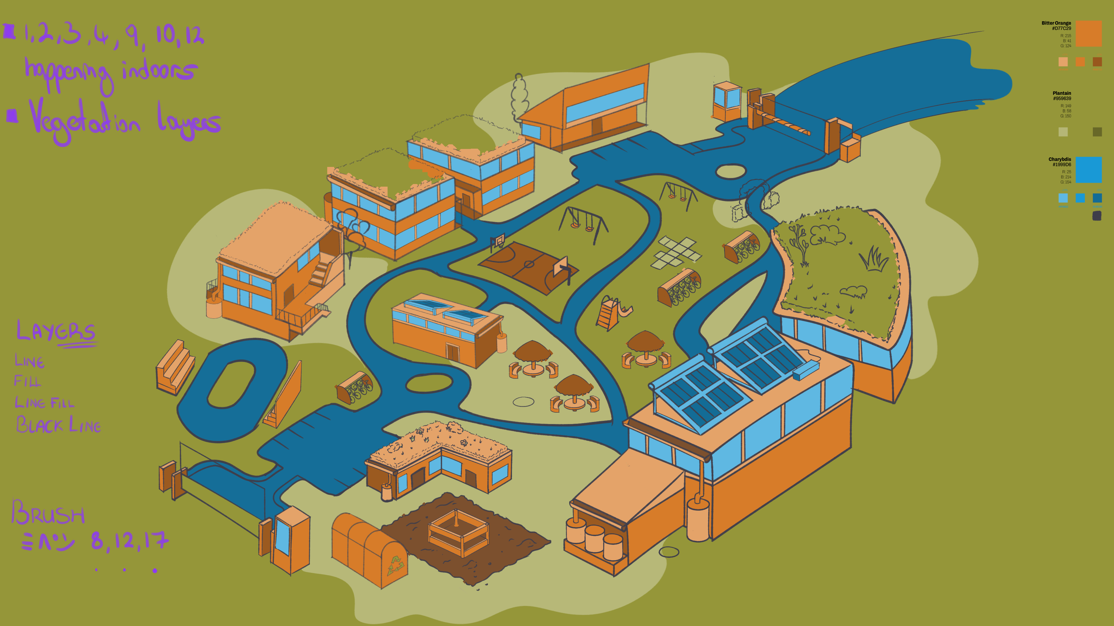 My task was to therefore design this school in a coherent way that flows from section to section with 12 different emphases on the types of changes that could be implemented.